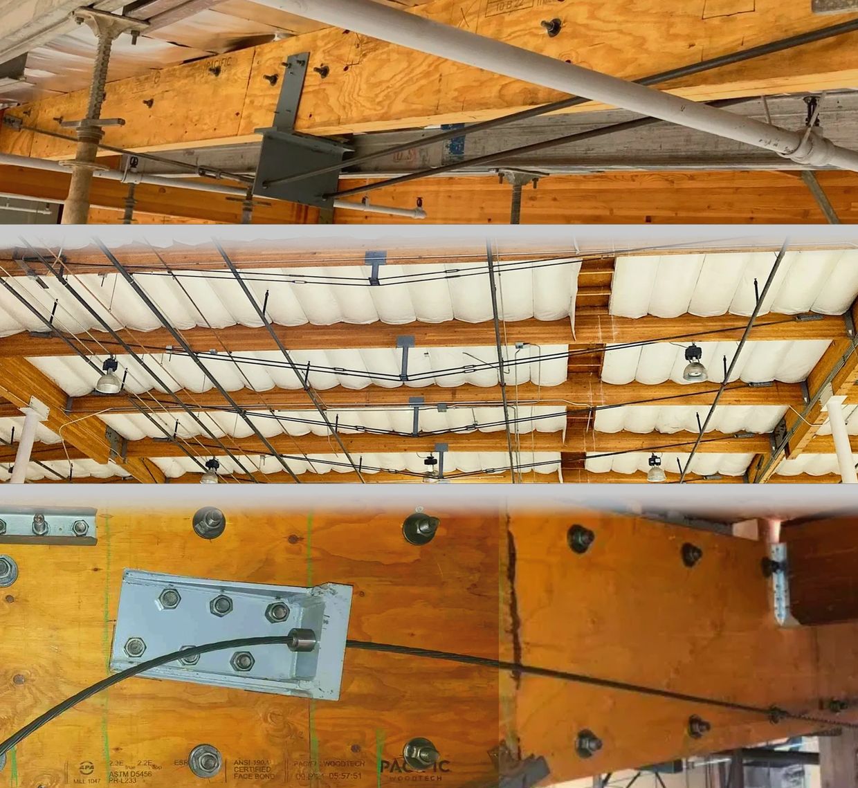 SPS utilizes a variety of techniques to maintain a structurally sound, physically practical, and economically affordable repair. These techniques include the use of post-tensioning systems, utilizing steel tension rods or high strength cables designed to increase the bending strength and shear strength of the target beam(s), which then allow it to accommodate loads greater than the original design load capacity.